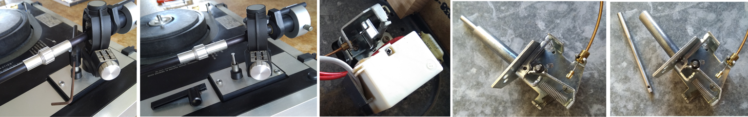 In 2024 heb ik het armlift-mechanisme uitgebouwd, het staafje en schachtje schoongemaakt en van nieuwe siliconenolie met een viscositeit van 500K voorzien, weer ingebouwd en de hoogte afgesteld. Na het naar rechtsdraaien van de liftknop duurt het ongeveer 4 seconden voor de naald in de groef staat.