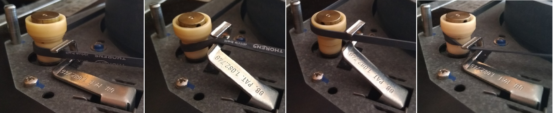Als het niet niet lukt om over te schakelen van 33 naar 45 tpm of als bij het opstarten het plateau de verkeerde kant op draait, is het waarschijnlijk tijd voor een nieuwe snaar. Een gladde uitgerekte snaar moet worden vervangen. Als je de snaar tussen je vingers doortrekt, moet deze stroef aanvoelen. Ook met een goede snaar lukt het soms niet om overschakelen van 33 naar 45 tpm. De oorzaak hiervan is een bijna niet zichtbaar spoortje rubber dat zich in de verzethaak heeft afgezet. Hierdoor kan de snaar niet in de haak glijden en klapt dan de verkeerde kant op waardoor hij niet tegen de trapjes van de poelie wordt gedrukt voor de gang naar boven. Goed schoon- en gladmaken van de binnenkant van de haak lost dit probleem op. Bij de gang naar beneden wordt de snaar van de trapjes weggedrukt. Voor de juiste werking kantelt de snaar naar rechts bij de overgang van 33 naar 45 tpm en naar links bij de overgang van 45 naar 33 tpm.